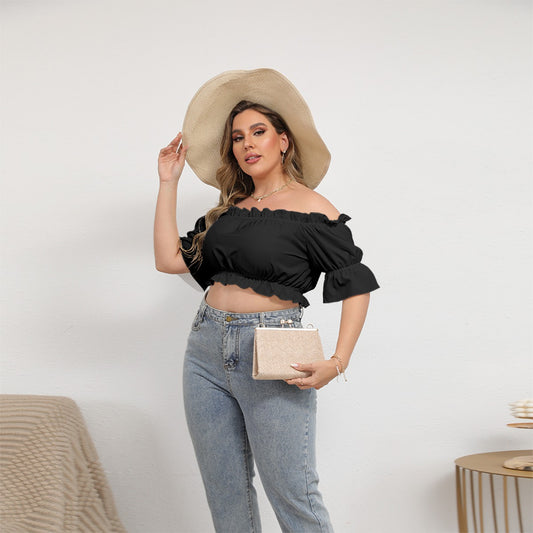 Gemma Black Minimalist High Quality Off-shoulder Cropped Top With Short Puff Sleeve