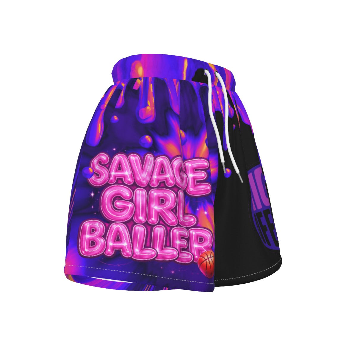 Drippy Black Mighty Lifestyle Savage Girl Baller Basketball Shorts – Women & Teen Athletic Hoop Shorts | Street Basketball & Gym Fit