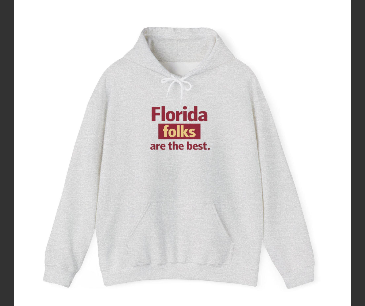 Wrap yourself in easygoing Sunshine State pride. This cozy hoodie features the phrase “Florida folks are the best.” in a clean, vintage-inspired block type, printed in a rich maroon and gold colorway that feels instantly familiar to Floridians.